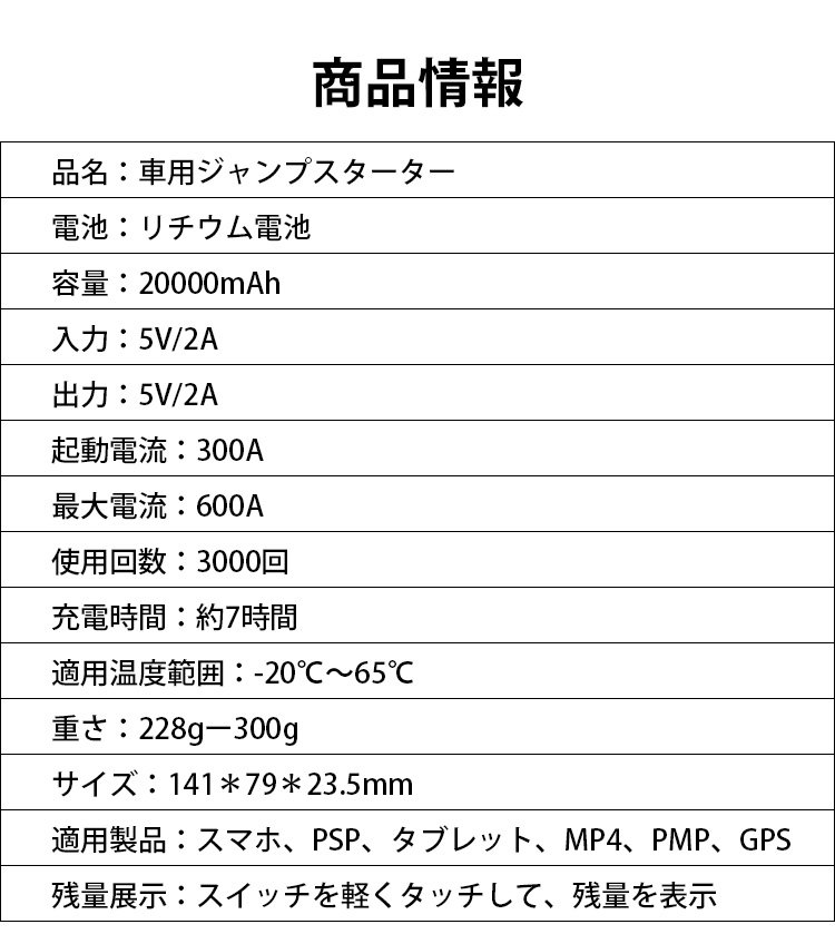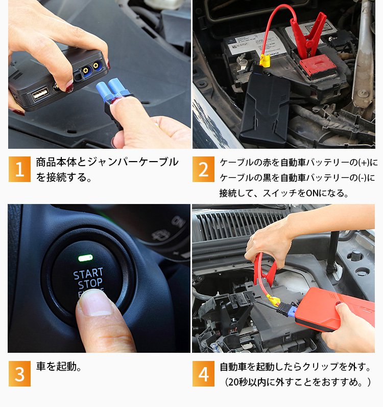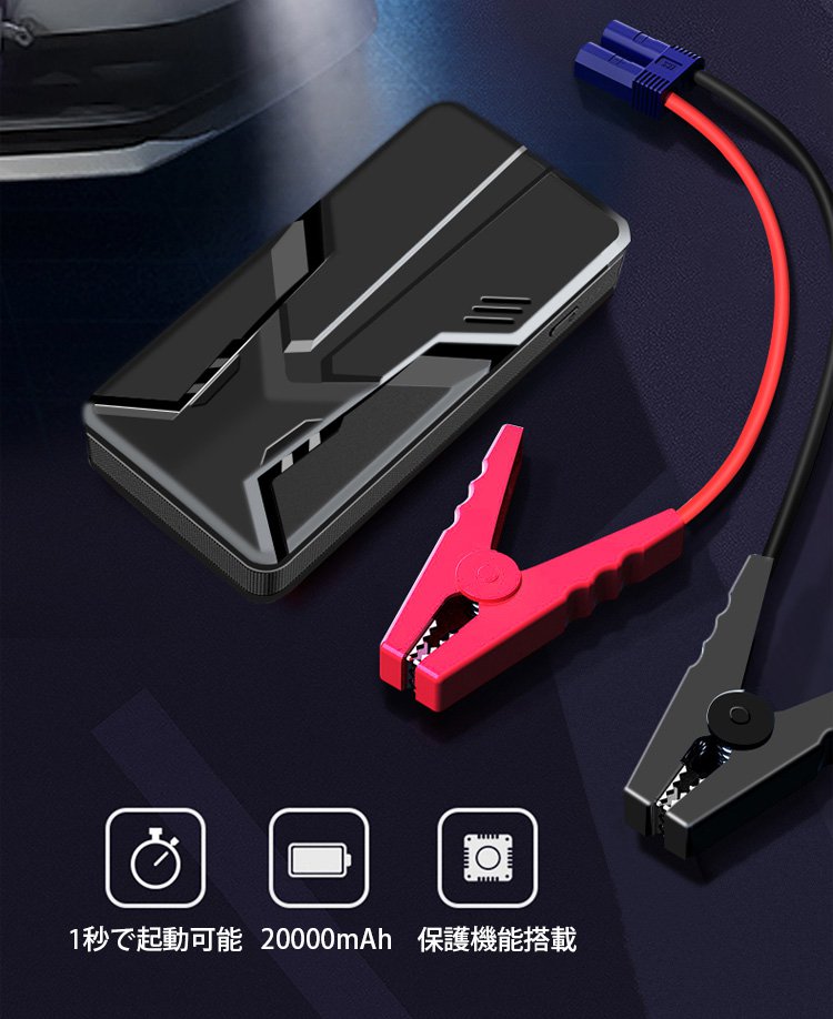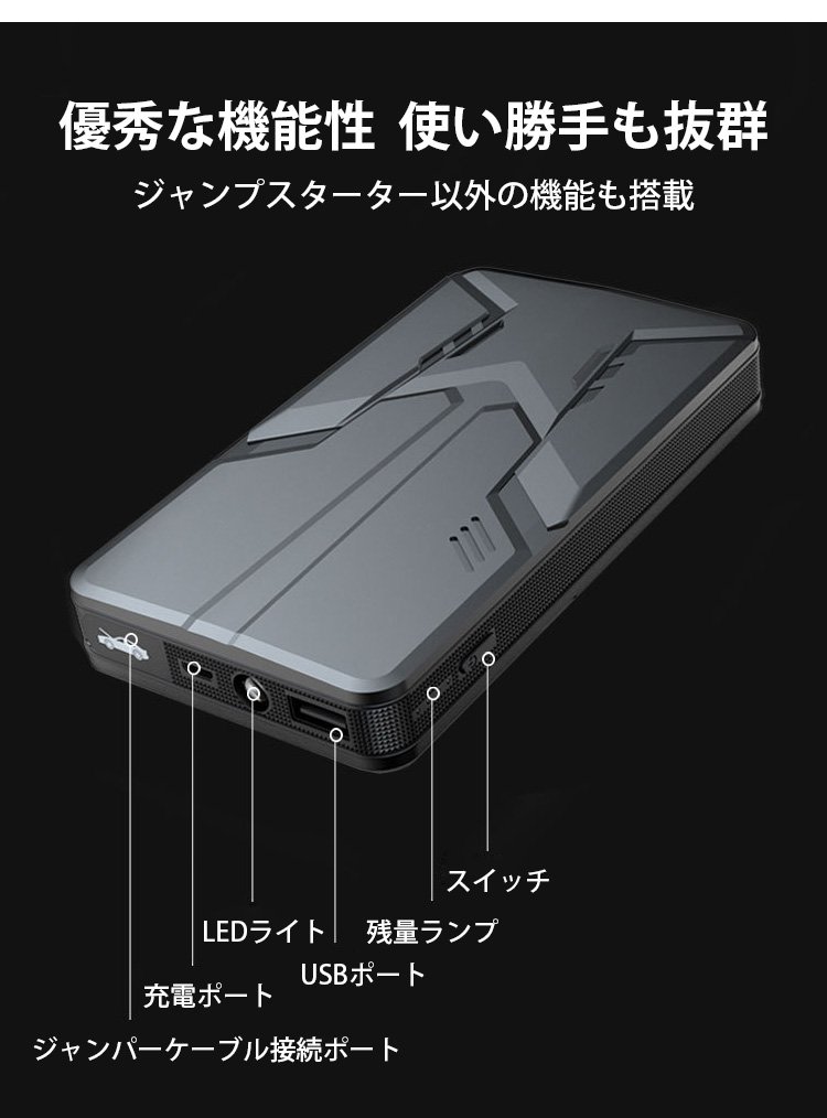 新作通用版車用ジャンプスターター、操作簡単、接続するだけで瞬間に車が起動